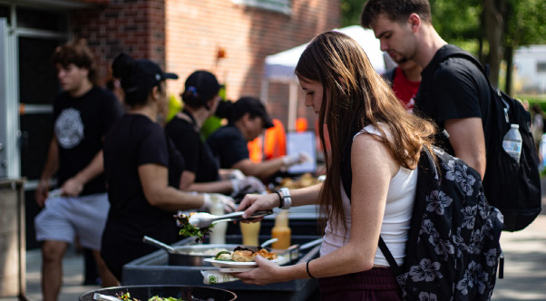 The dining hall partnered with the event by hosting lunch outside, giving students the chance to enjoy a unique meal of spicy honey fried chicken, baked mac and cheese, desserts and drinks while exploring different volunteer opportunities between classes.