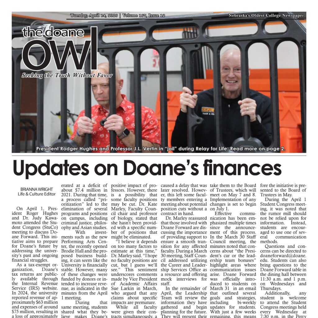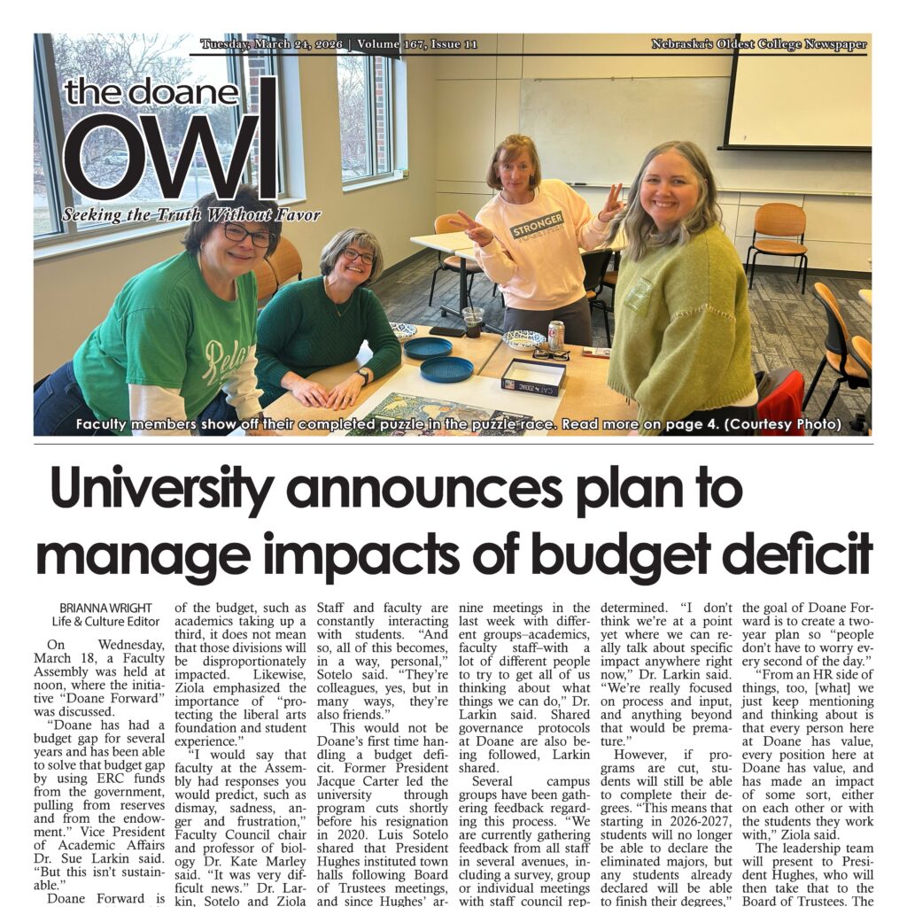 FULL ISSUE: Check out this week’s issue of the Doane Owl, Nebraska’s oldest college newspaper. Thank you for reading, and thank you for your continued support of student journalism at Doane!